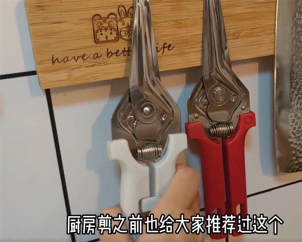 其次就是这种厨房剪刀了,它自带一个小弹簧,可以起到自动支撑回弹的作用,比传统的厨房剪刀用起来要更加省力方便一些。