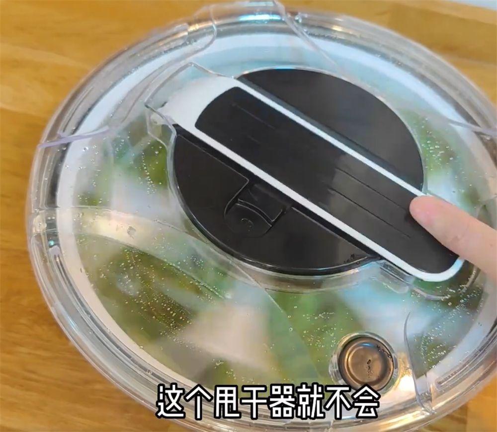 简单按压盖子上的翘板,内部的沥水篮就会快速旋转,沥干水果蔬菜上的残余水渍,实用性真的很强,关键也省力方便,推荐一下~