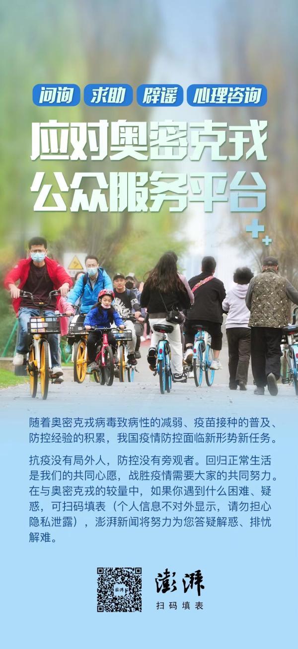 PS:澎湃新闻已上线“应对奥密克戎公众服务平台”,如有困难疑惑可扫码填表,澎湃新闻将努力为你答疑解惑,排忧解难。