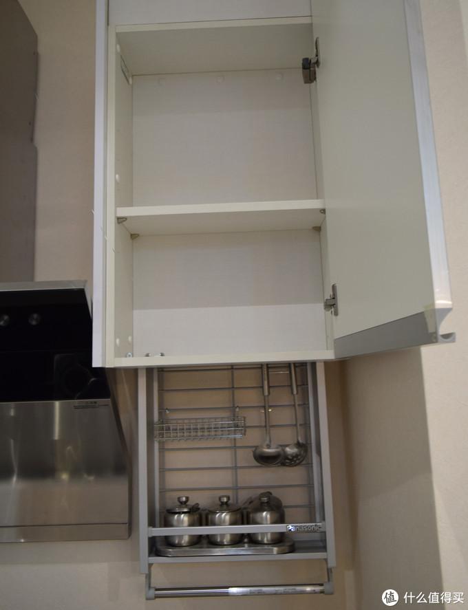这个五金我觉得是这个我认为比较适合我家的五金,平时收起来很干净,调料盒上也不会落灰,上面还可以放一些例如平时不用的火锅漏勺还有大漏勺等用品,且高度正好比较适中。