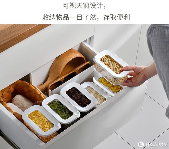 收纳罐推荐百露、Scybe、宜家的产品;百露这款产品,可视的长方形设计,不但减少了空间的浪费,还不会让你在炒菜的时候到处翻哪个罐子放了什么东西;百露的东西我也买了不少,他的优点就是便宜没有味,但是质量和天马、爱丽思、禧天龙还有一点差距,毕竟价格在那呢,性价比比较高。