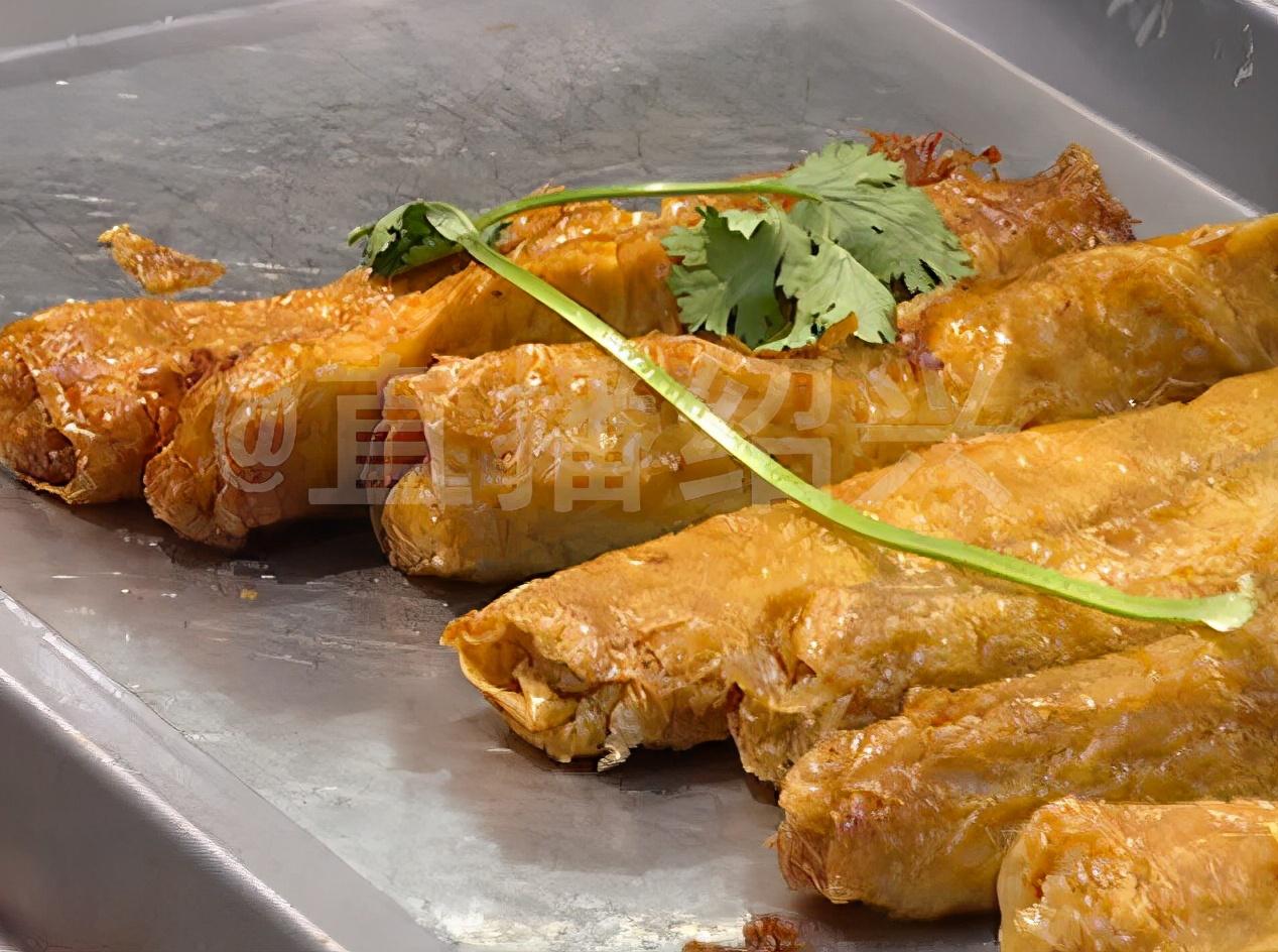 陈先生一共买了三条豆卷,花了10.9元,价签上写着豆卷的主要食材就是豆腐皮,生产日期为10月20日,保质期到10月21日。