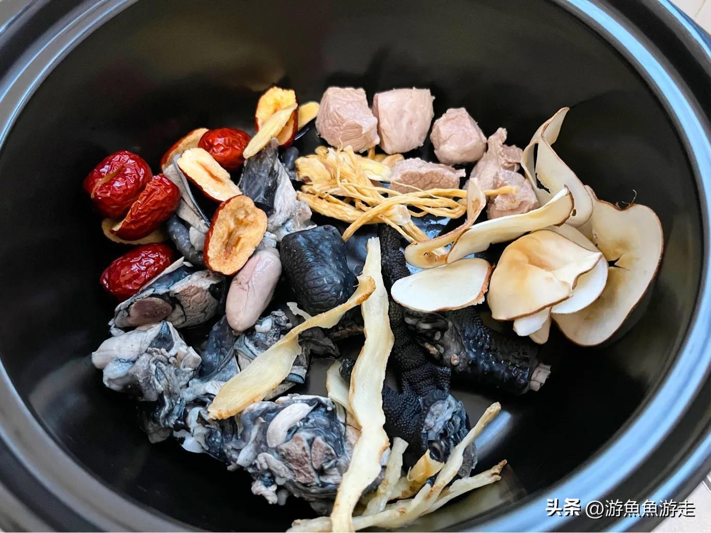 食材:乌鸡、瘦肉、海底椰、党参、黄芪、玉竹、红枣