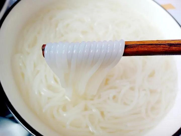 除了用料讲究,米粉也不一样!吃它,一定要水煮!冷水下锅,煮上10多分钟就行。