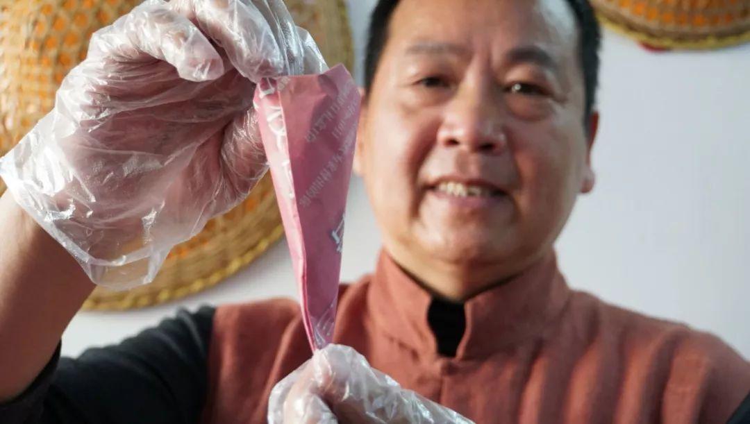 刘展明师傅展示包装好的南乳花生