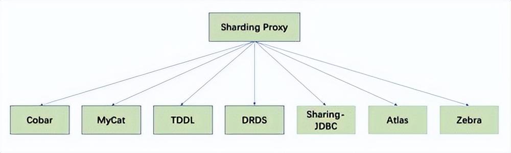 21世纪第2个十年,由于人口红利尚在,互联网产业继续高歌猛进,MySQL已经成为大多数互联网公司建站的首选和事实标准,相应配套的分库分表解决方案也如雨后春笋般不断涌现,很多公司都研发了自己的分布式数据库中间件,Cobar进化为MyCat,工作在客户端的Sharding-JDBC也被很多用户认可并采纳。简单列举常见产品,如下图所示:
