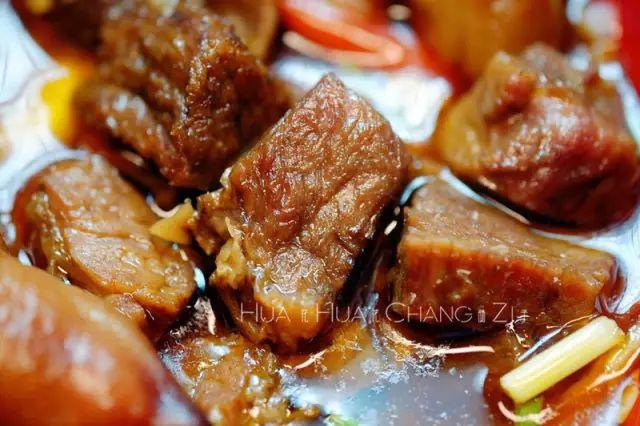 猪脚粉是走泡椒路线,泡椒味直接渗入粉中,配上店主自己做的泡菜,喝一口汤头,口感够酸爽!此外店家的牛肉也不错,熟客常常的吃法是猪脚+牛肉,牛肉是黄焖加泡椒,你会吃到一种牛肉干巴的感觉,非常特别。