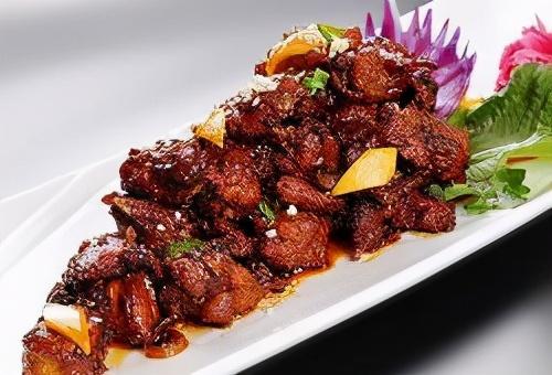 玫瑰兔丁这道菜已被收录在了川菜传统菜谱里了,这道菜属于热菜冷吃,这道菜选用冰糖着色、入味,口味偏甜,属于咸甜味型,做法简单,干香解馋,同样的方法我们也可以用猪肉来代替兔肉做一道玫瑰肉丁。这道菜属于不辣川菜中的传统菜,餐馆很难吃到哦,不妨试试。