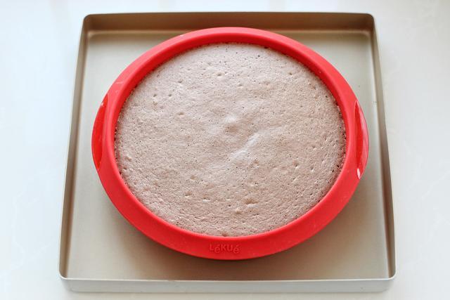 9.取出烤好的蛋糕晾温脱模,放置一旁彻底晾凉。
