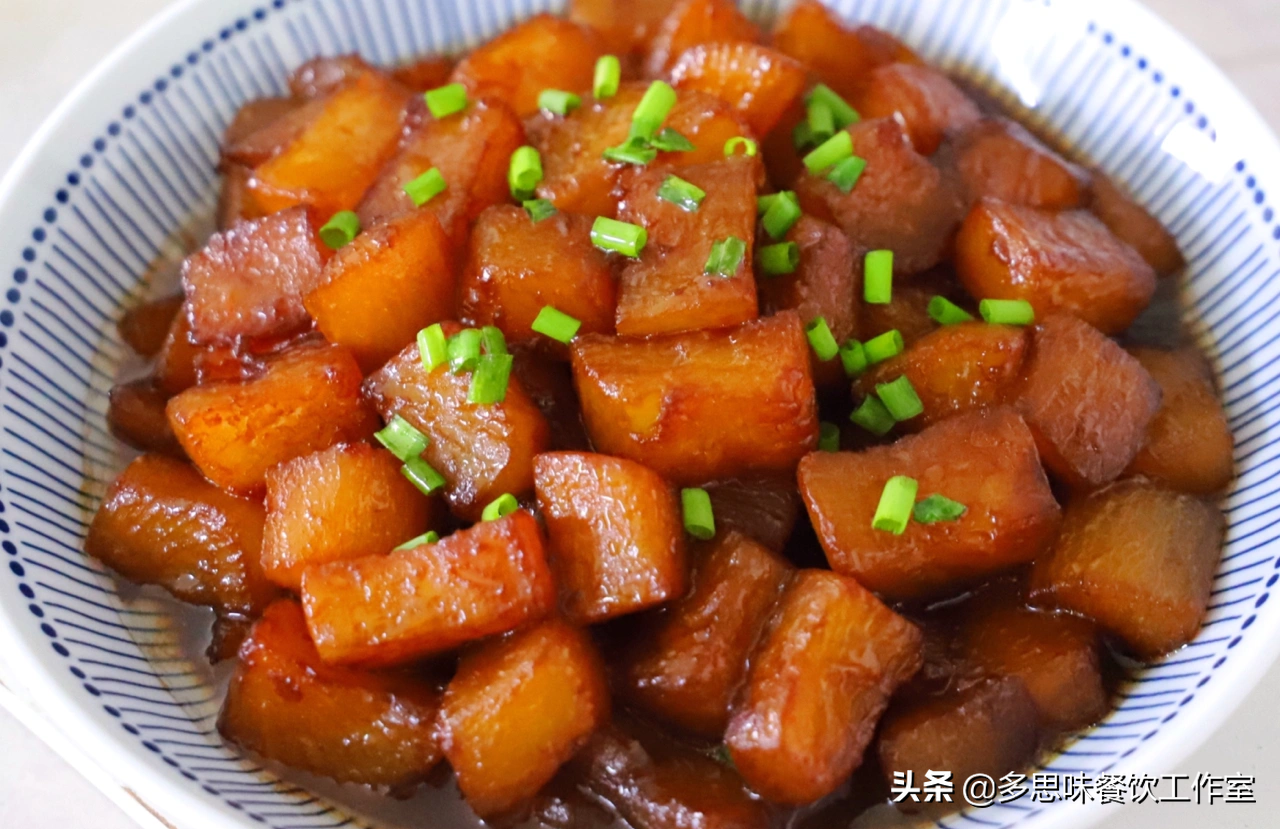 红烧萝卜材料:白萝卜1个,生抽2勺,蚝油1勺,盐少许,油适量,香葱适量