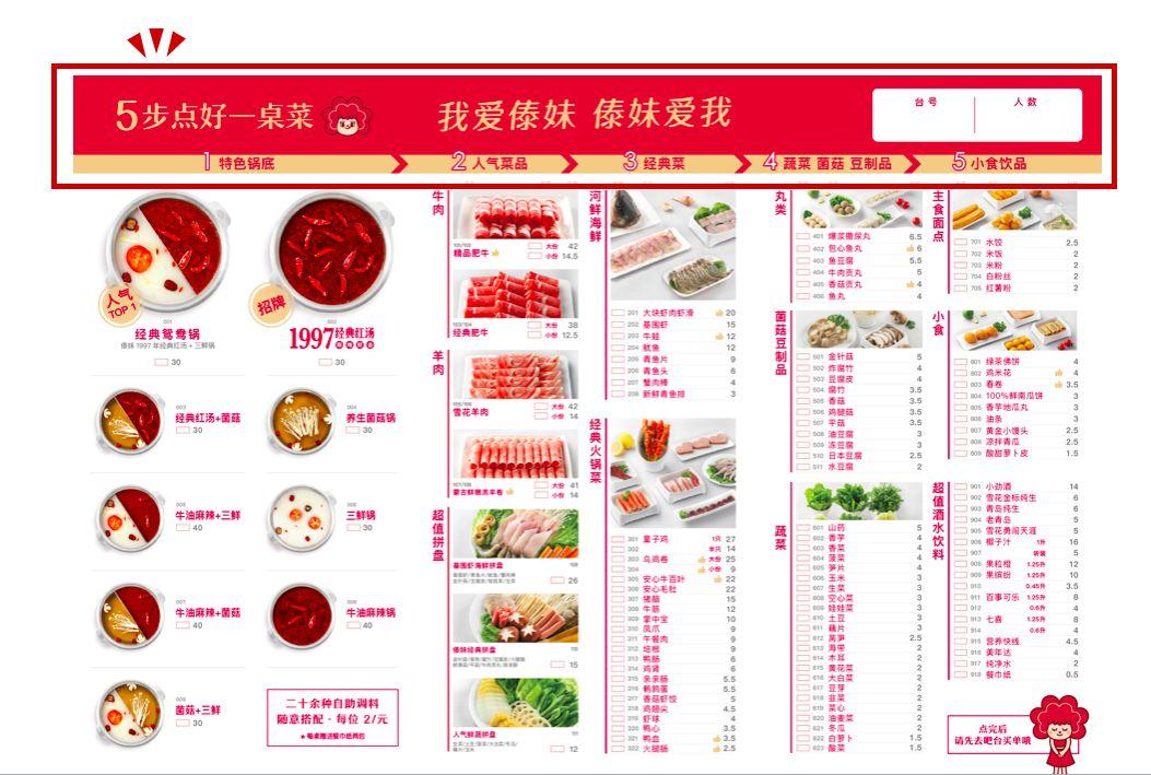 傣妹火锅受制于亲民平价的经营模式,不可能在商圈进行大批量的广告投放;于是我们为傣妹找到了一个不花钱的超级广告位:门店菜单。