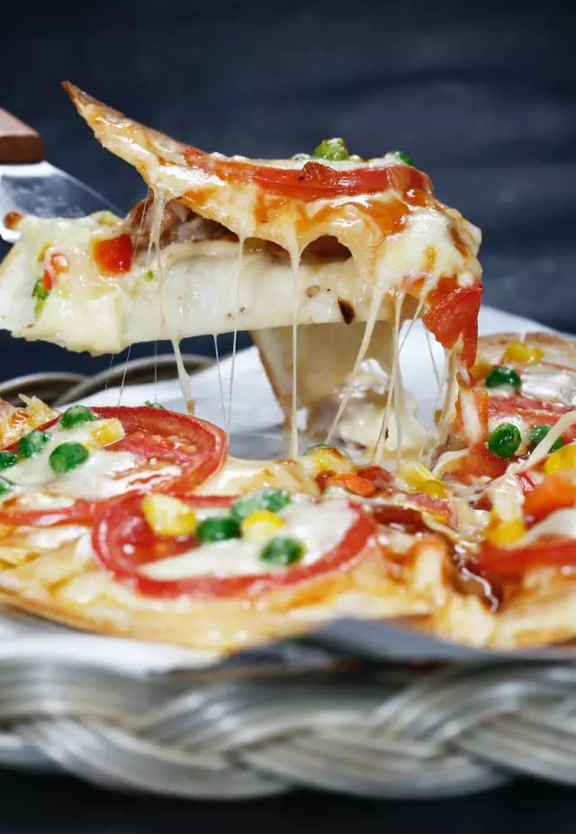 厚厚的芝士,充足的配料