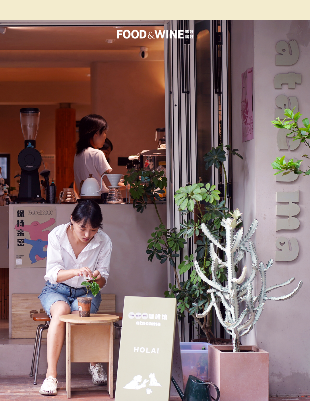 与武汉早期精品咖啡从业者不同,主理人Hannah算不上重度咖啡爱好者。她此前在上海从事咨询工作,是标准意义上的高级都市白领,一场突如其来的重病以及由此引发的工作和家庭变故,让Hannah彻底厌倦了上海。2020年底,她回到家乡武汉,想尝试另一种生活。咖啡馆是个不错的选择,她一直对建筑设计感兴趣,手术修养时在上海Seesaw工作过一段时间,觉得咖啡馆氛围很好,自由开放,有点像在国外上大学时参加聚会的氛围。2021年7月,经过半年的选址装修,Atacama开业。地址选在江岸区的郝梦龄路上,往东是成熟的商业中心武汉天地,西边是解放公园,附近有长春街菜市场和第二中学,江滩也在步行范围之内。Hannah说,它像处在一个风暴中心,四周吵吵闹闹的,只要一拐进来就瞬间安静。