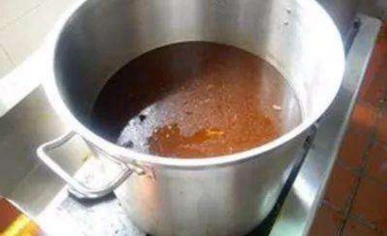 2.炒至嫩汁或者糖色状态之后一定要加2斤开水熬制,如果添冷水一则辛苦熬好的糖液颜色一下被激回去了,而且还会凝固,形成小颗粒。二则热糖、冷水之间温差太大,会爆炸伤人。炒好的嫩汁、糖色如果用不完,放凉之后则不会再凝固,仍然呈汁状,可当酱油使用。但如果是夏天,需要将其放入冰箱保存,否则会变酸!糖色炒不好,重新炒,免得炒老了卤水发苦,发黑,颜色不亮,